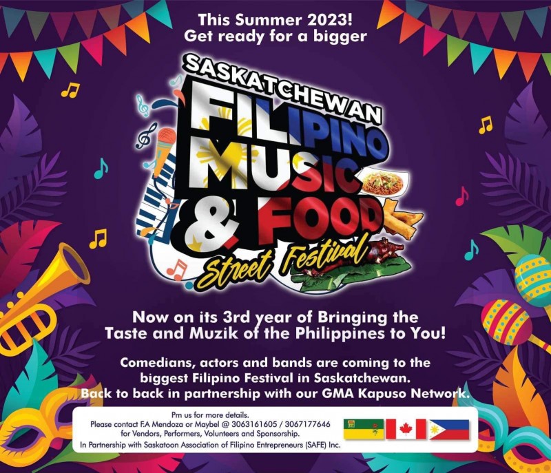 EVERYONE is invited to the Saskatchewan Filipino Music and Food Street Festival 2023 on August 4 & 6.