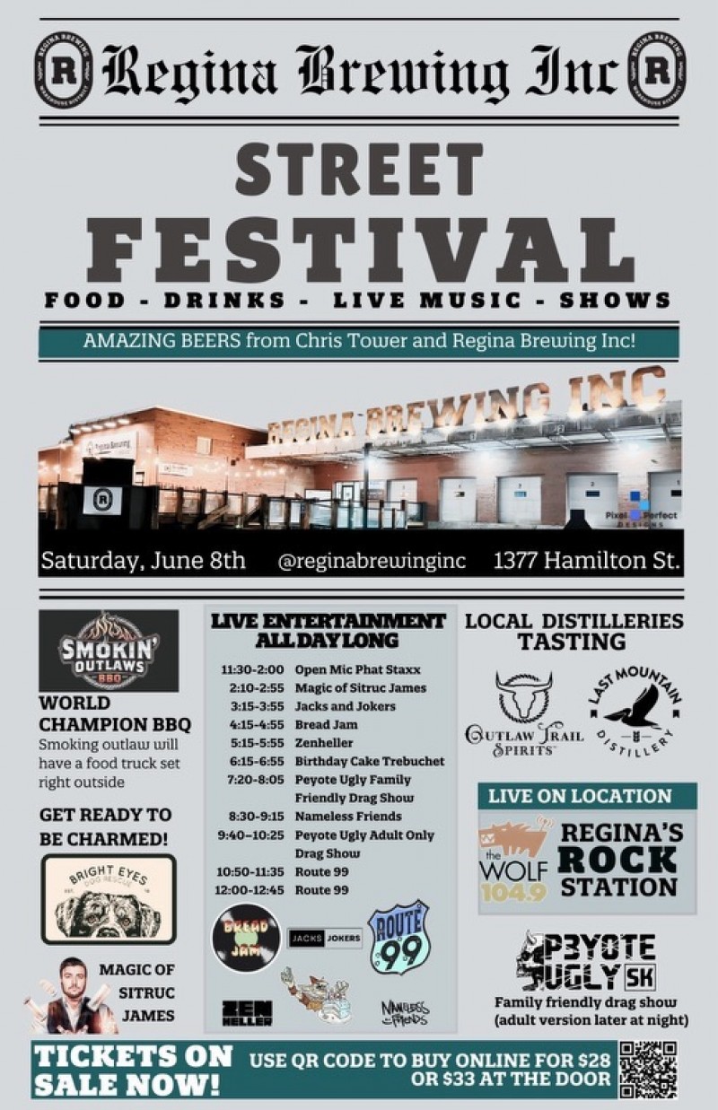 Join us for the first annual Regina Brewing Street Festival on June 8th, located at 1377 Hamilton st in regina!