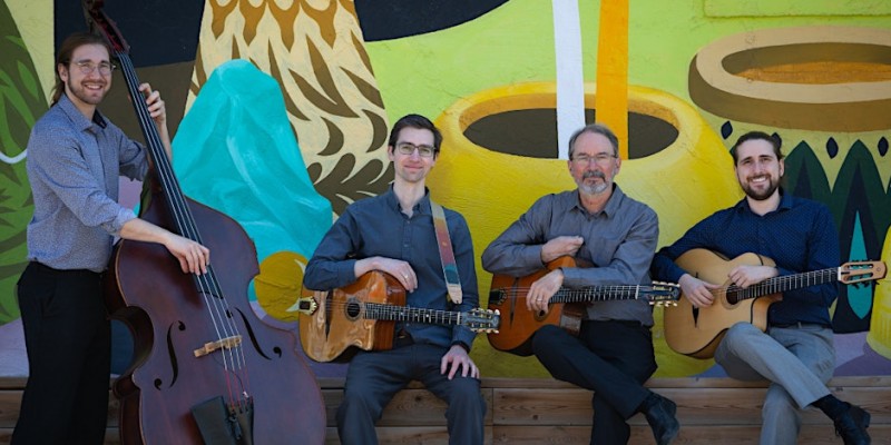 Sons of Django pays homage to the music of Django Reinhardt, the Belgian-Romani guitarist who fused American and French jazz with a flamenco technique in the 1930s and ’40s. Performing classic Reinhardt compositions as well as popular jazz standards and contemporary manouche pieces, the Sons of Django are Stephen Davis (lead guitar), Rory Lynch (lead guitar), Lorne Deighton (rhythm guitar), and Emmett Fortosky (bass).