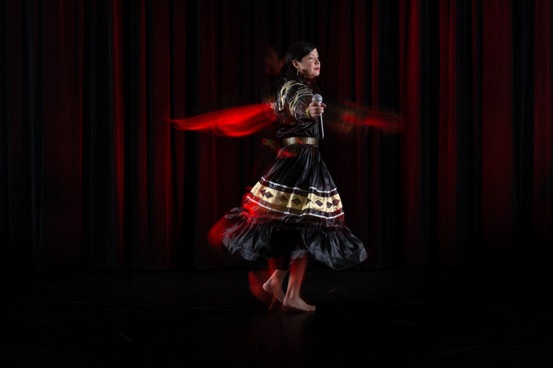 This performance of Wampum / ᎠᏕᎳ ᏗᎦᎫᏗ refers to wampum belts and