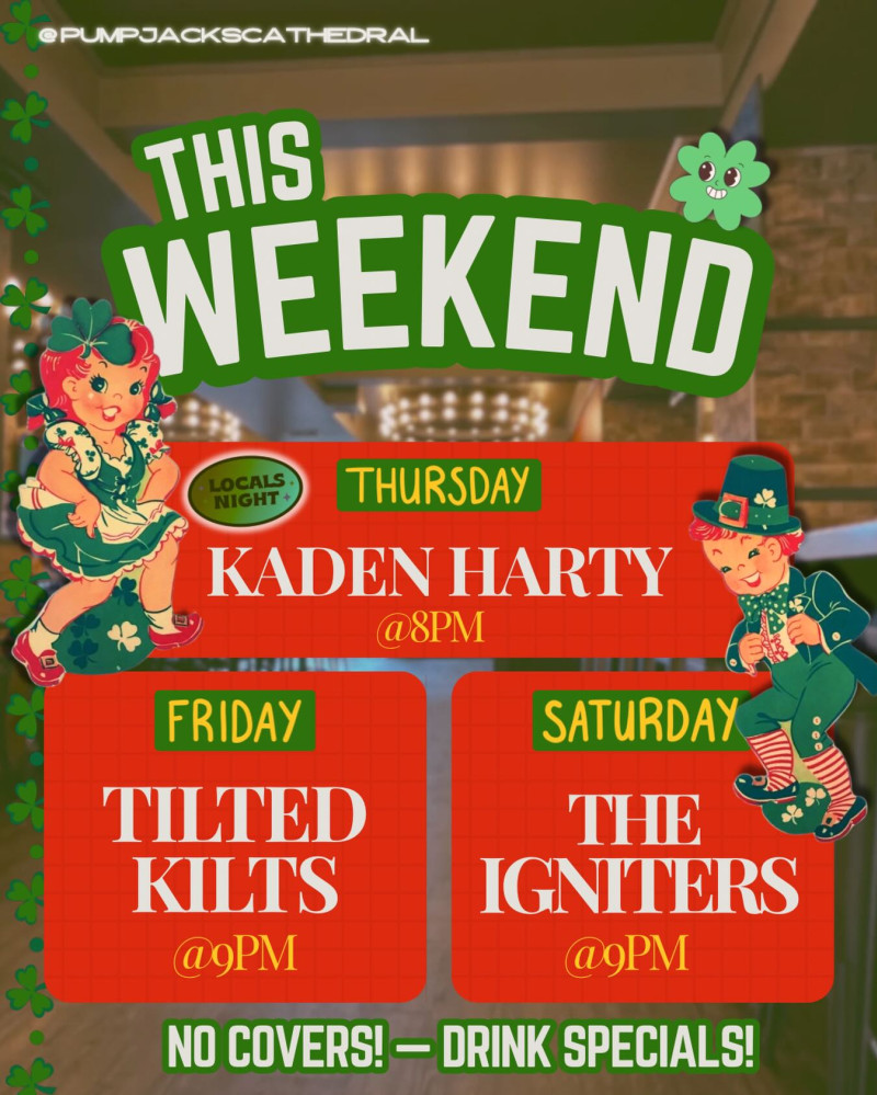 Start the party with live music from the Tilted Kilts at 9PM and keep the celebrations rolling all weekend with: