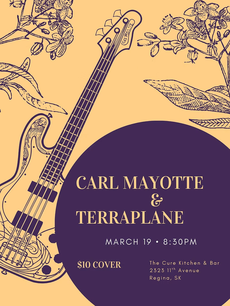 We are very lucky to welcome back Jazz Bassist Carl Mayotte, all the way from Quebec, to light up the stage at The Cure with Regina's own Terraplane.