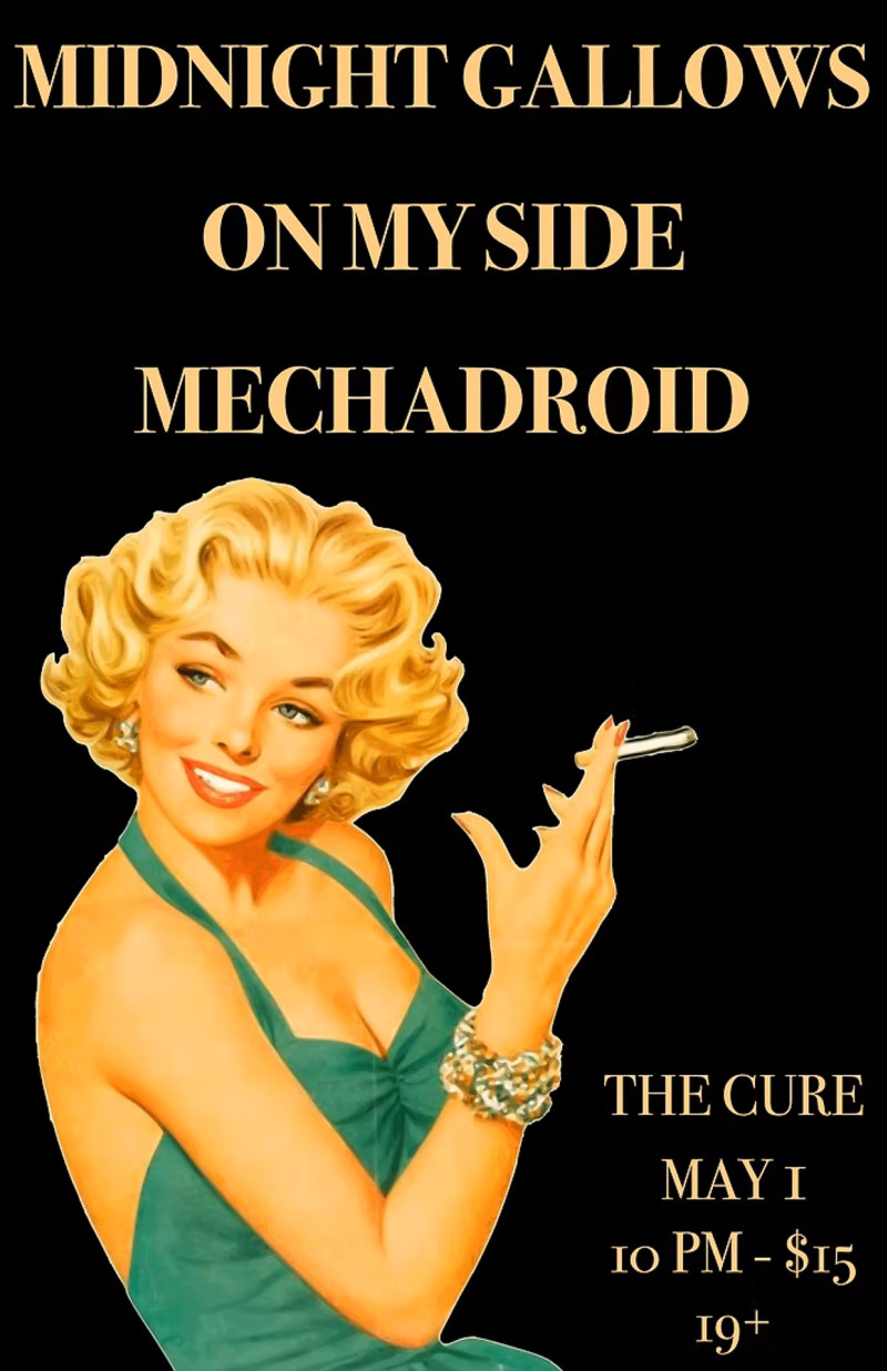 A raucous Friday night show in Regina featuring Midnight Gallows, On My Side (Edmonton) and Mechadroid.