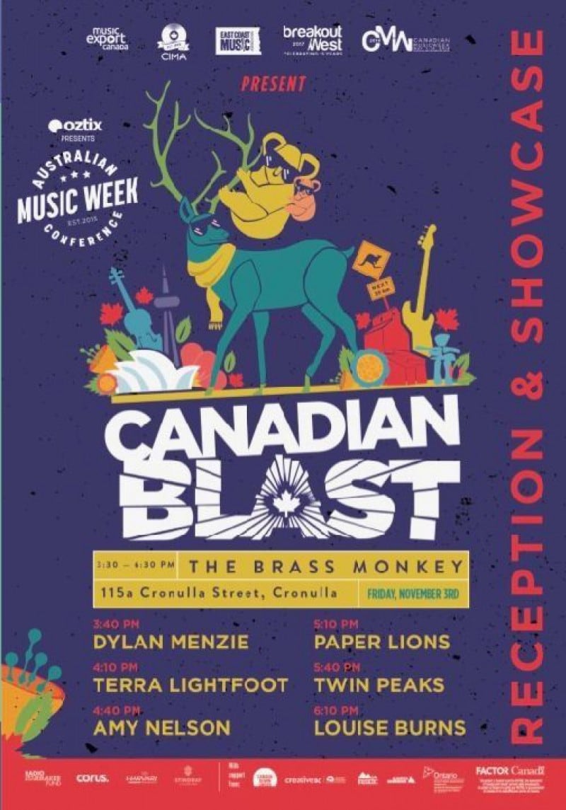 On Friday November 3, 4:40pm she will be joining the delegation of BreakOut West, East Coast Music Association (ECMA), Canadian Blast, Canadian Music Week and the Canadian Consulate of Australia for a Canadian Blast showcase at the The Brass Monkey Cronulla alongside Dylan Menzie, Paper Lions, Terra Lightfoot, Twin Peaks (Lindsay Pratt & Naomi Shore) and Louise Burns.