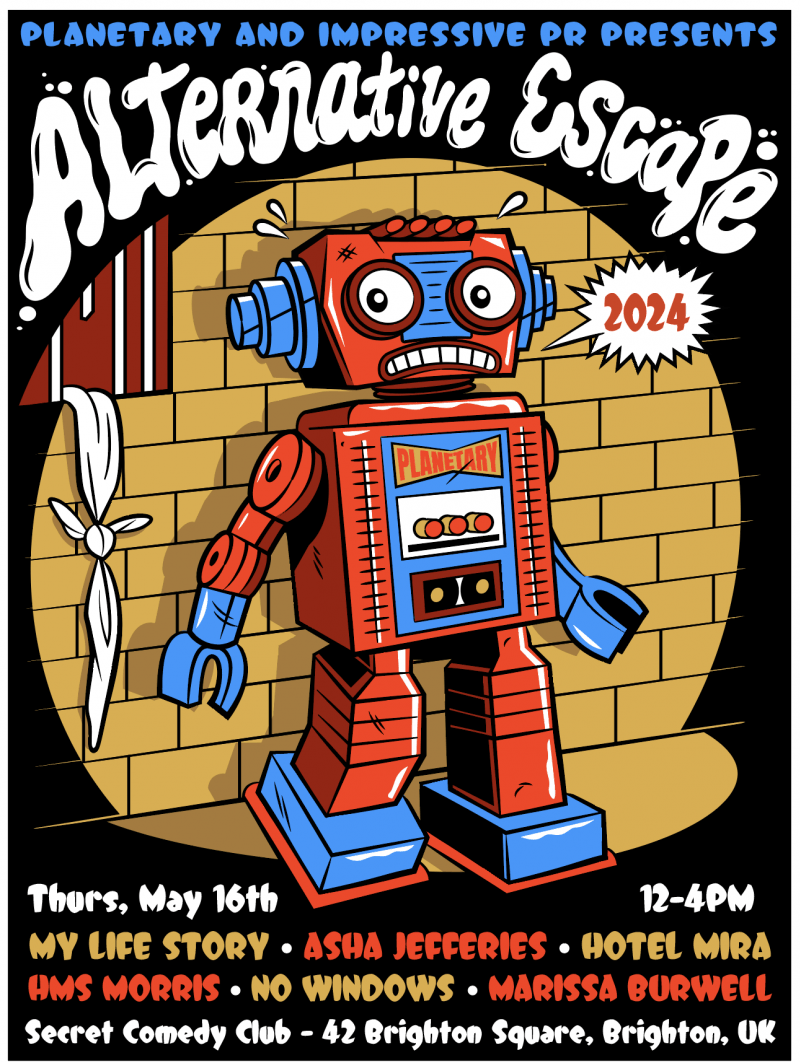 - May 16 – Secret Comedy Club,12:00pm Alternative Escape (duo show) presented by Planetary Group and Impressive PR (The Great Escape)